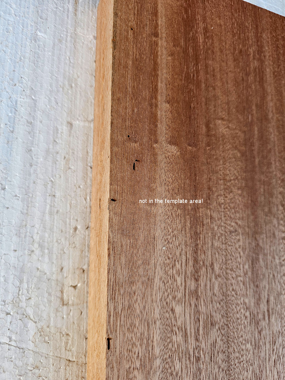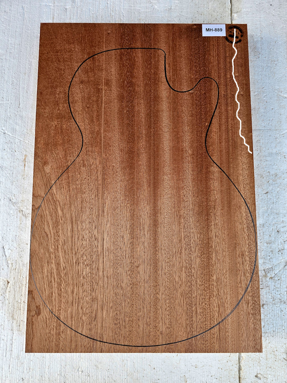 …solid one-piece mahogany (Sipo) body, with a few firmly ingrown “nuts”