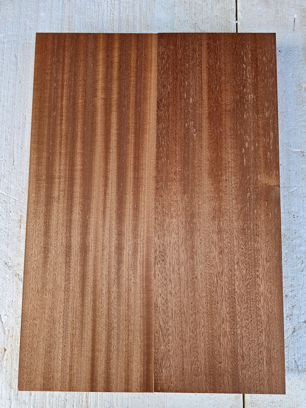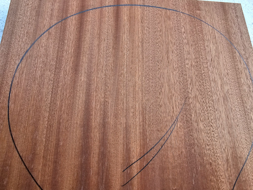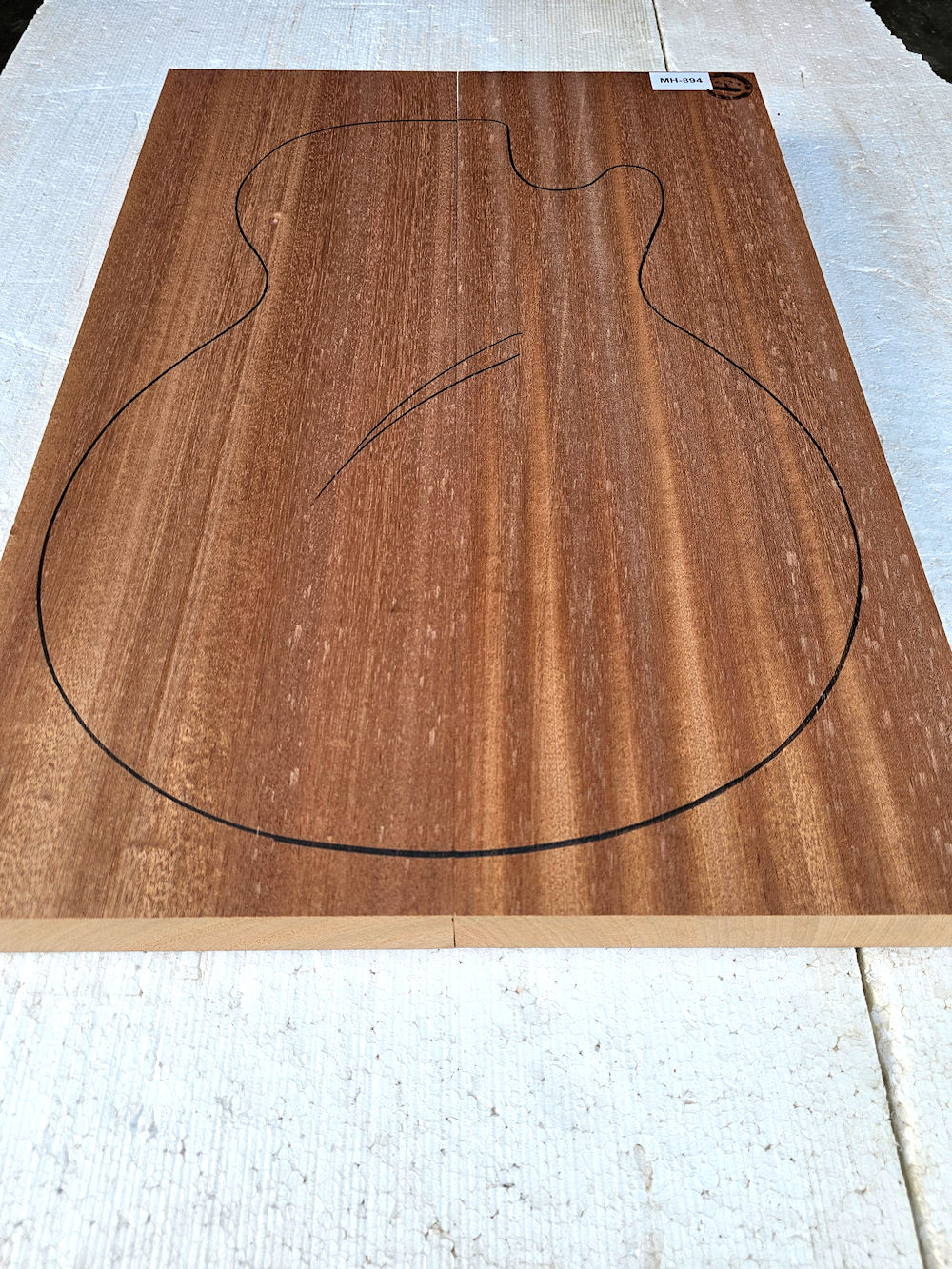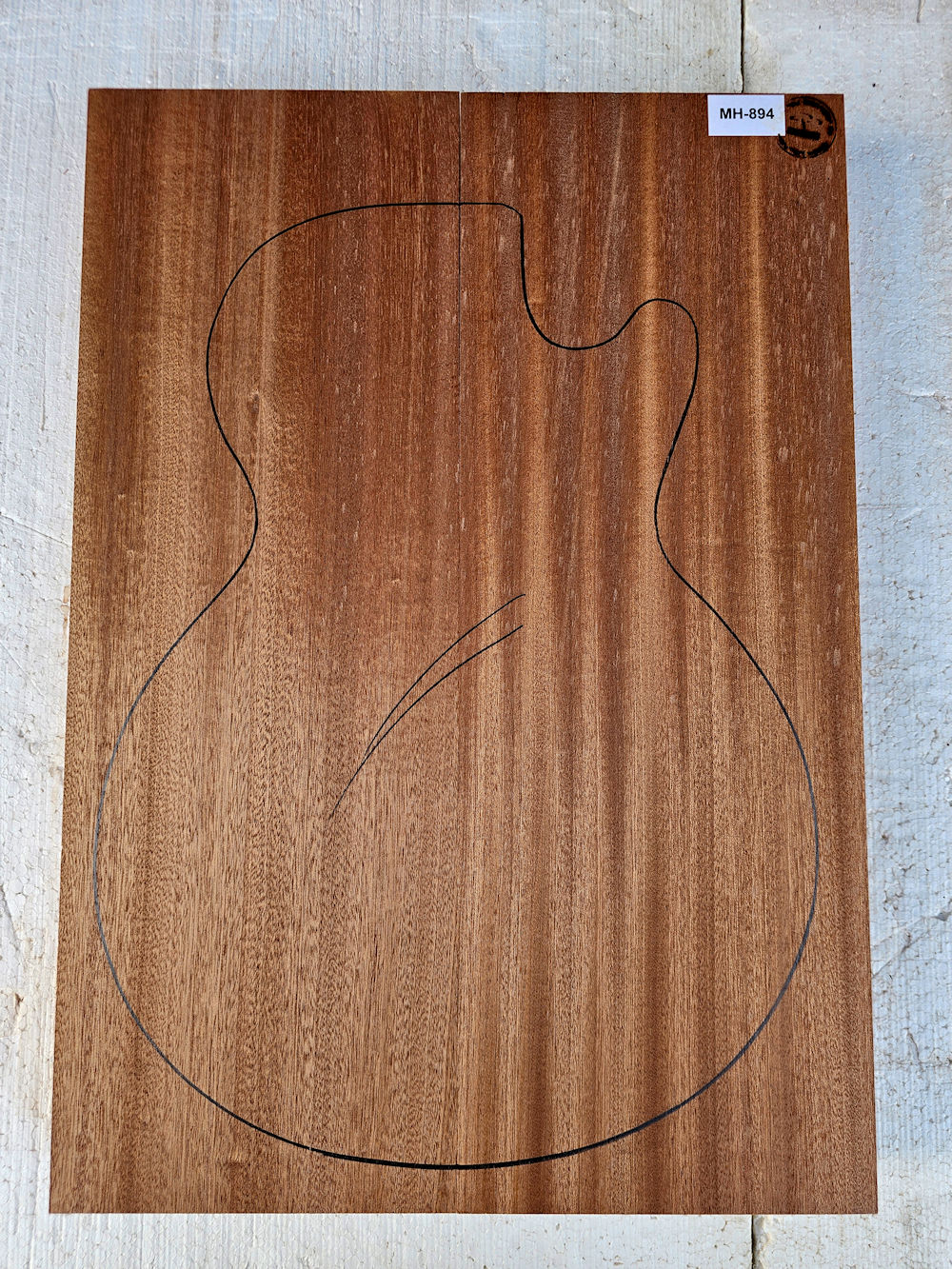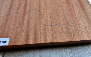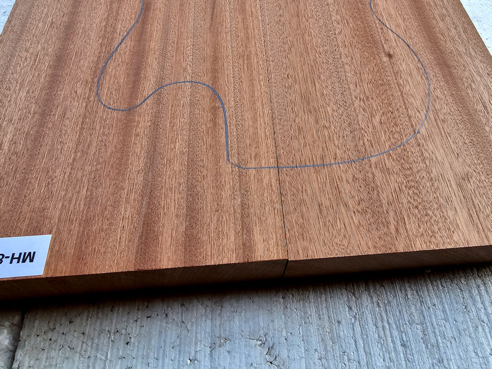 …solid 2pc. mahogany (Sipo) body, unglued. The double lines indicate the joints. We would be happy to process this body for you. Please take a look at our “further services” category.