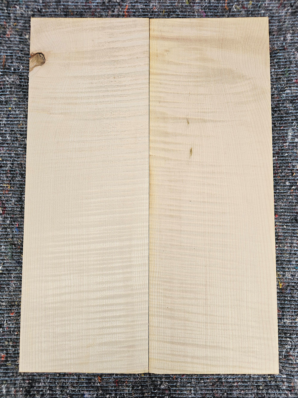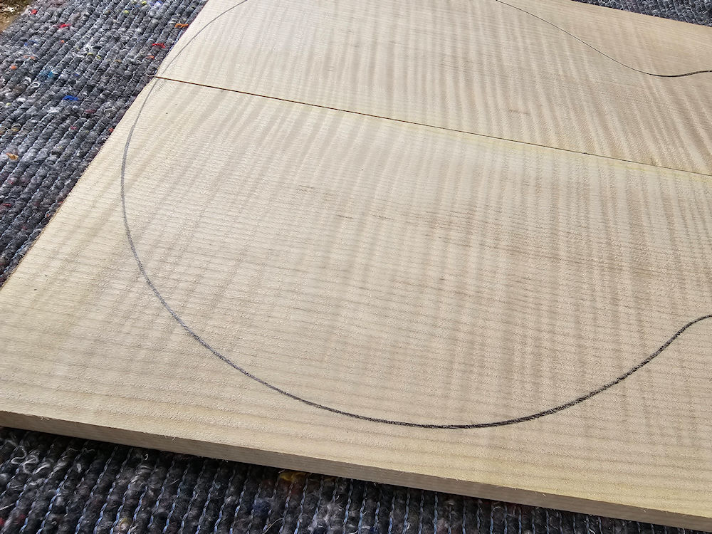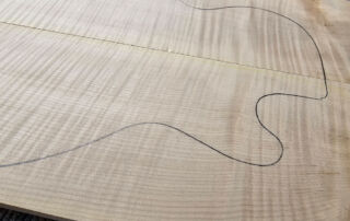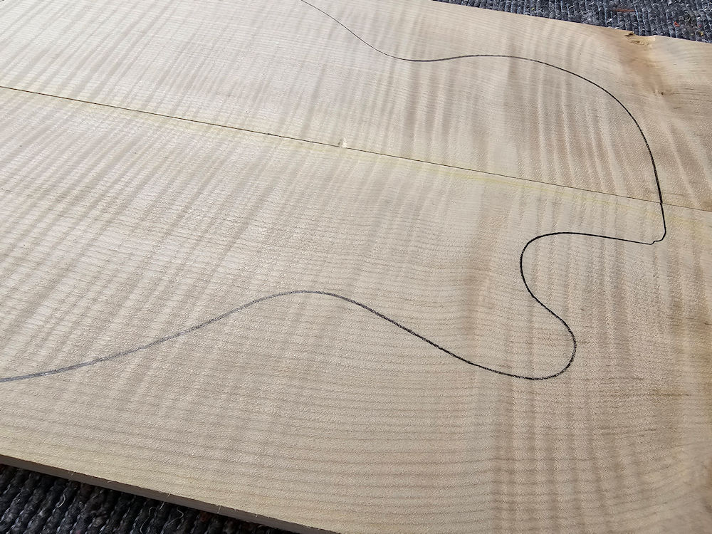 …Well-grained curly maple top with slight discoloration. Certainly well suited for colored surfaces.