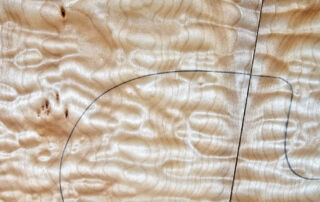 …intensiv gemasertes quilted Maple Top! Sehr sauber innerhalb der LP-Schablone. (Bitte bedenken: unsere Schablonen sind etwas größer als die Originals! Somit ist man auf der sicheren Seite)