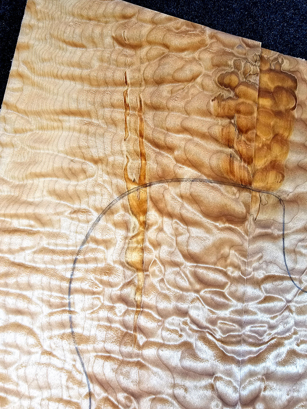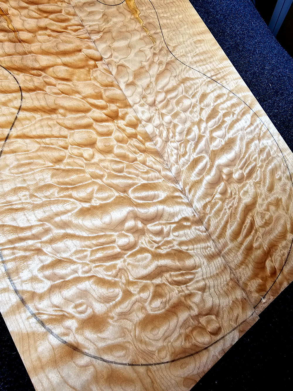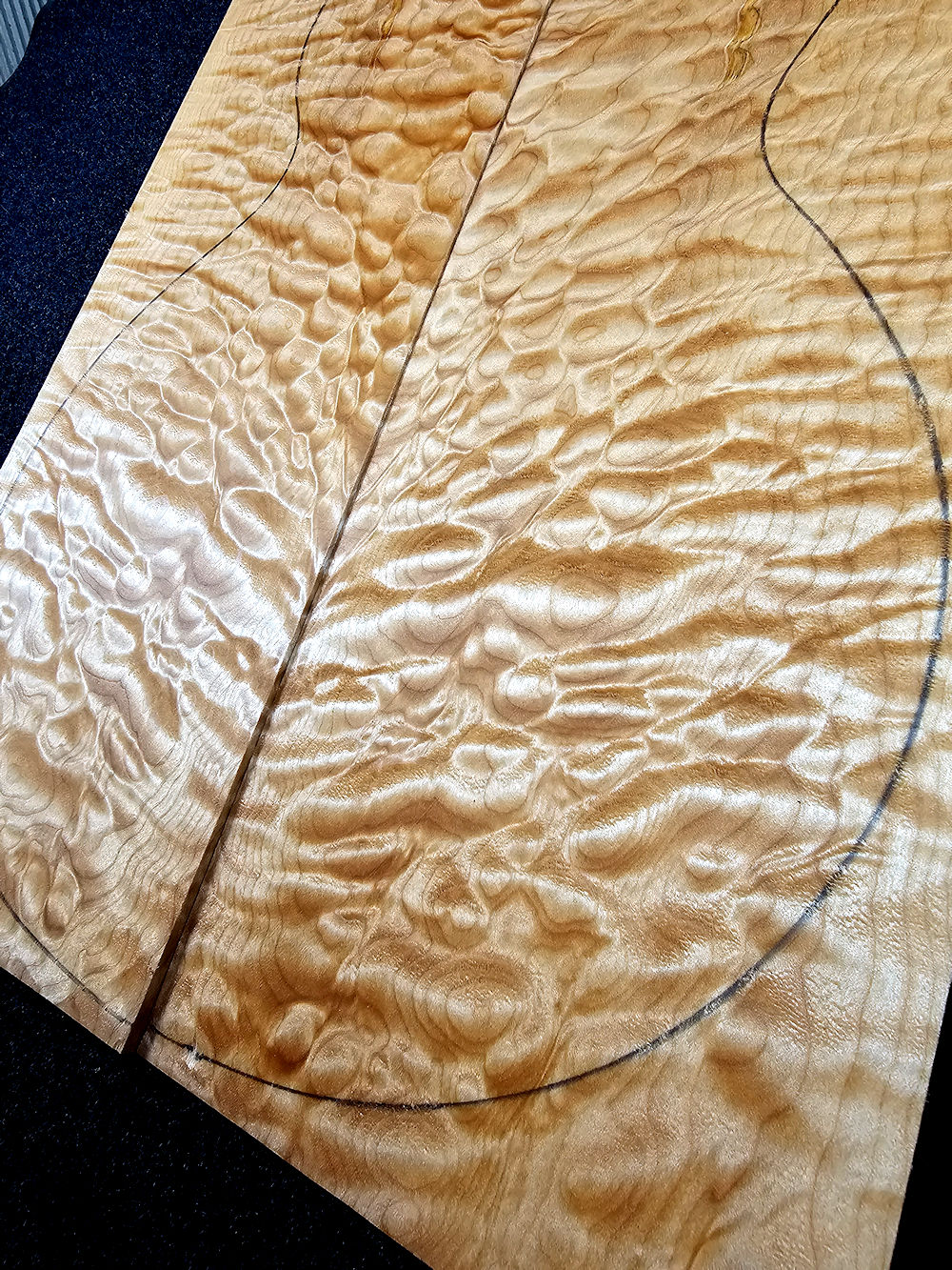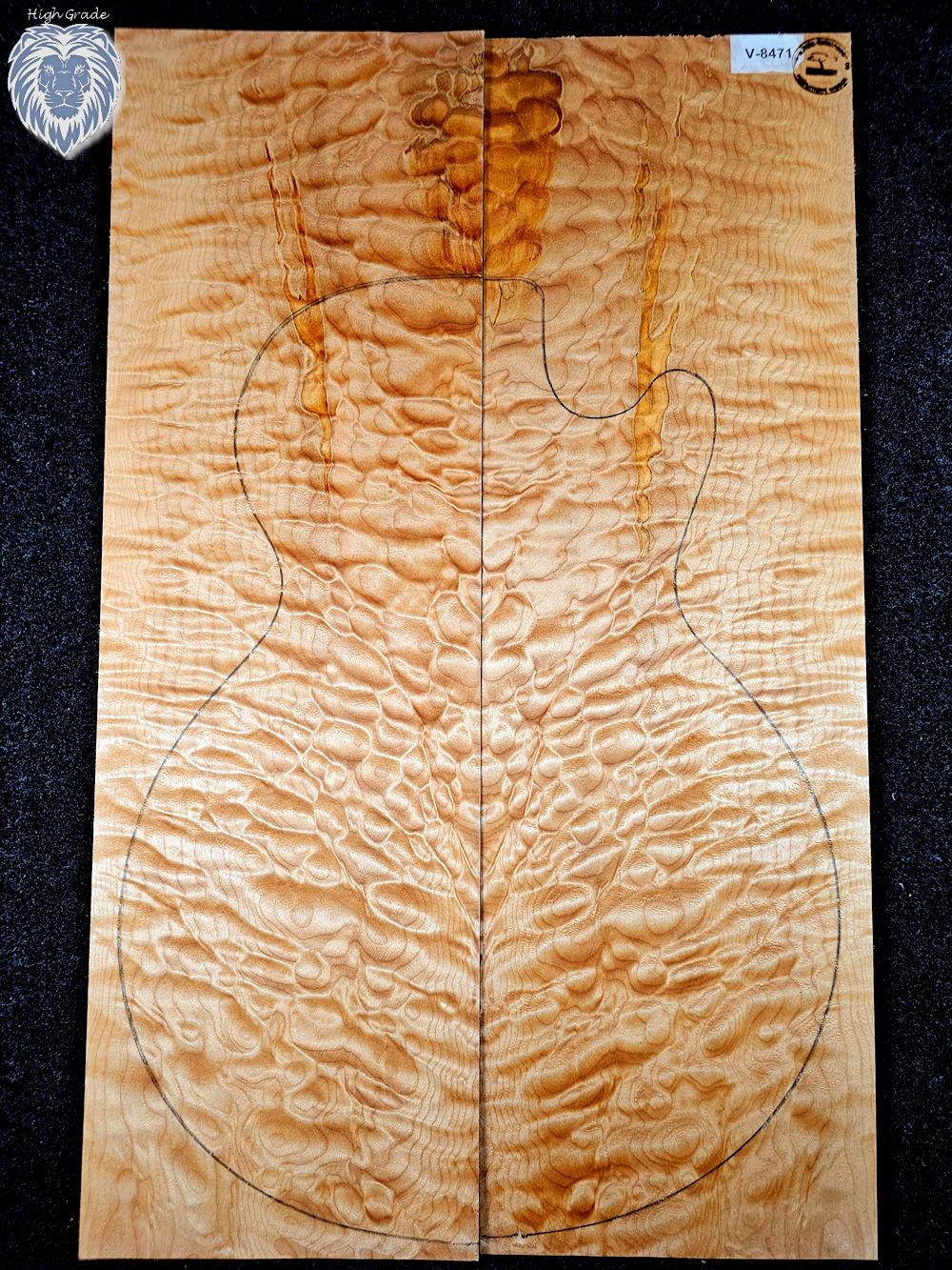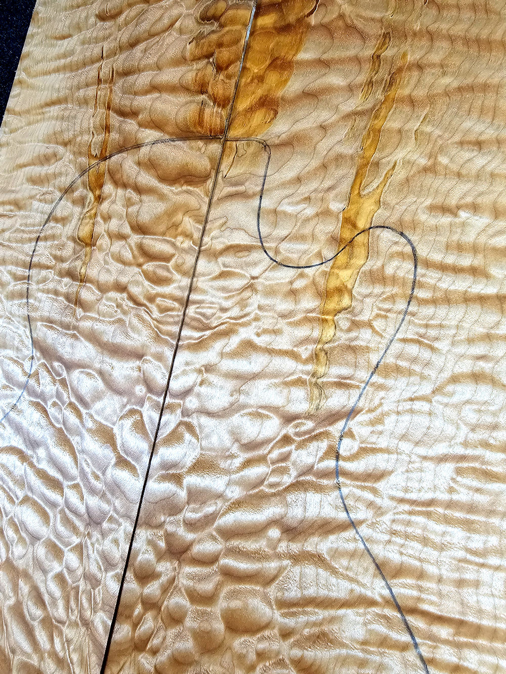 …intensely grained quilted maple top with a few color runs /Spalting accents! (Please note: our templates are slightly larger than the originals! This is to be on the safe side.)