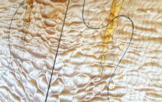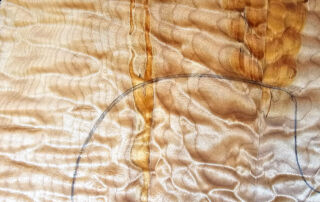 …intensiv gemasertes quilted Maple Top mit ein paar Farbeinläufen / Spalting accents! (Bitte bedenken: unsere Schablonen sind etwas größer als die Originals! Somit ist man auf der sicheren Seite)