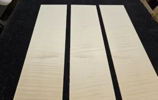 3 beautiful curly maple guitar sides. Three pieces is not exactly a convenient number for Guitar Sides. However, this is because they are all bookmatched, cut from a single block. Unfortunately, this block was not thicker. However, this should not matter too much, because the other sides shown here are very similar and therefore compatible.