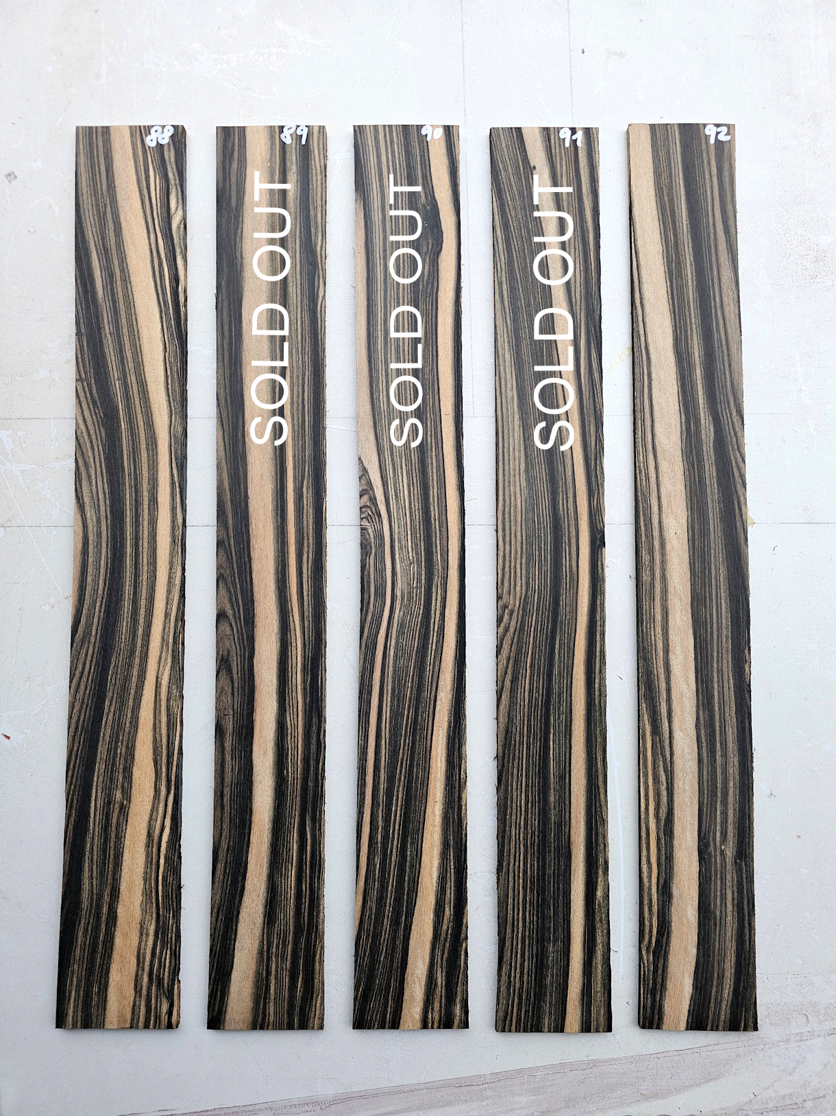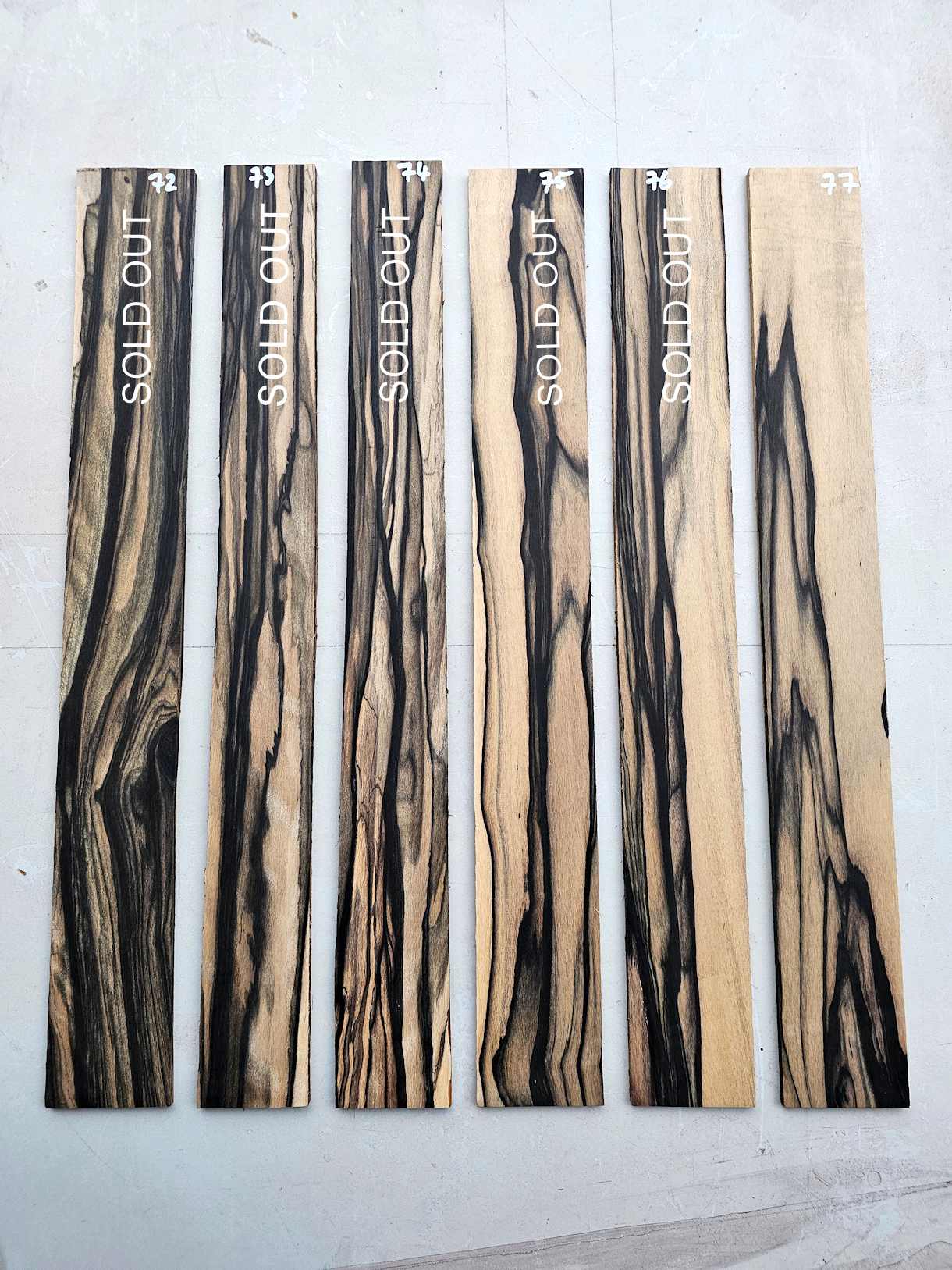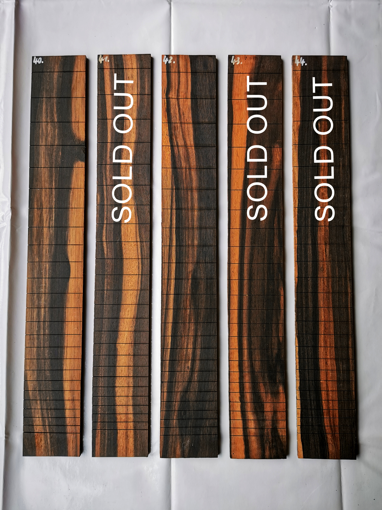 Prem. COLORFUL EXOTIC EBONY Fretboard blanks with 648mm Fender-Strat.- Scale! The surfaces are planed, – NOT rounded!!